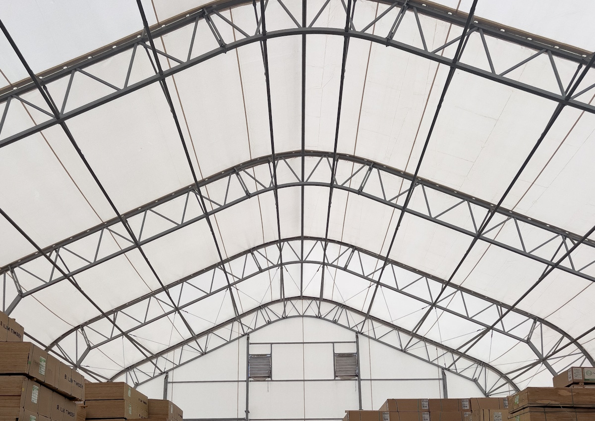 Работы по монтажу прямостенного ангара с двухскатной крышей